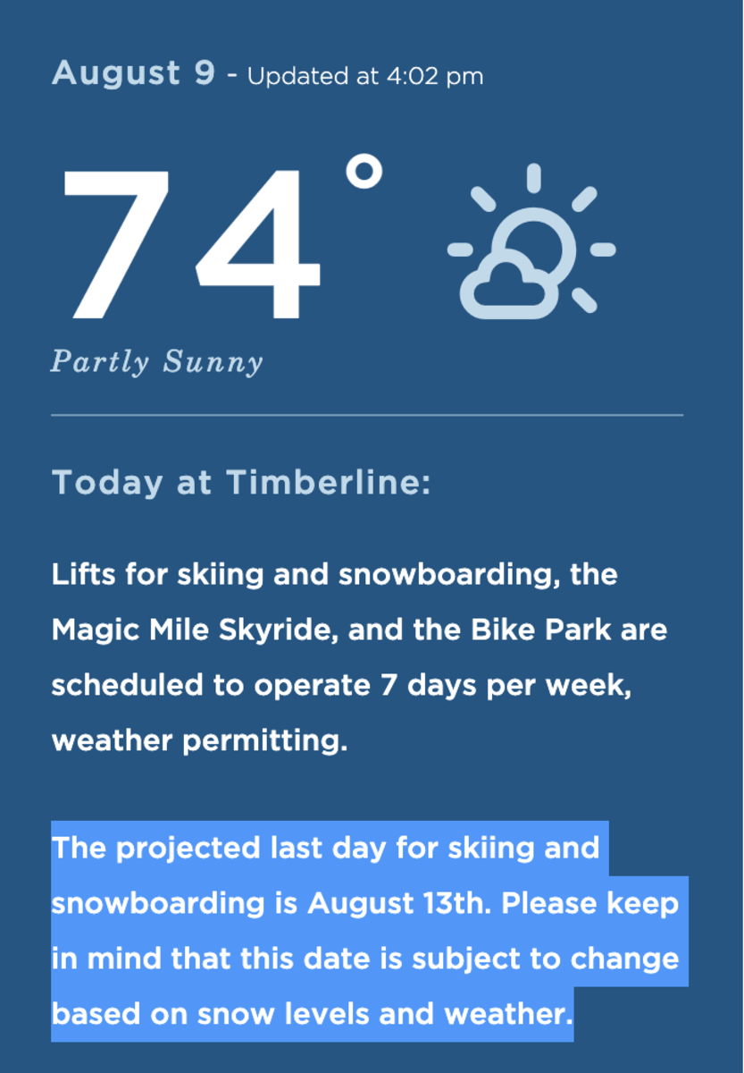 In a twist fit for a ski slope soap opera, the news broke that Timberline Lodge is set to take its final bow on Sunday, August 13th – mark your calendars! But, just like a plot twist, this date might waltz around a bit, thanks to the capricious whims of weather and the shrinking snow supply.