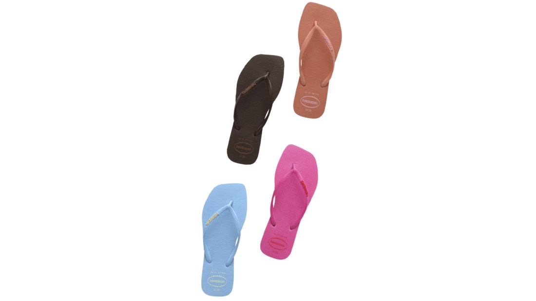 The women’s Havaiana Slim Square Logo Pop Up flip flop is the beloved Slim design, but reinvented.