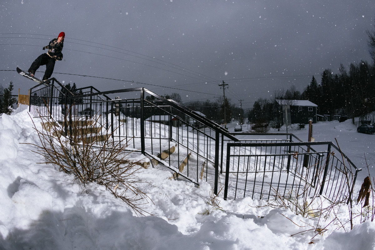 Give me a second. Favorite street part. Probably…. I would say Jake Kuzyk in Landline., but besides that, I love all of Jake Gaudette’s parts in the Book Club videos. Any Tommy Gesme part, especially when Colton Feldman’s filming, which is most of them. But the top one has to be Kuzyk in Landline. I have just watched those raw files so many times and watched the part so many times. His snowboarding is just so clean and effortless. It’s just nice to watch.