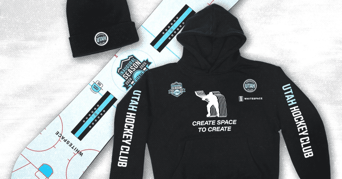 Three items came out of the collaboration. A co-branded hoodie that says “create space to create” and features “Utah Hockey Club” on the sleeves. A knit beanie features the Utah Hockey Club’s patch and an embroidered Whitespace logo.