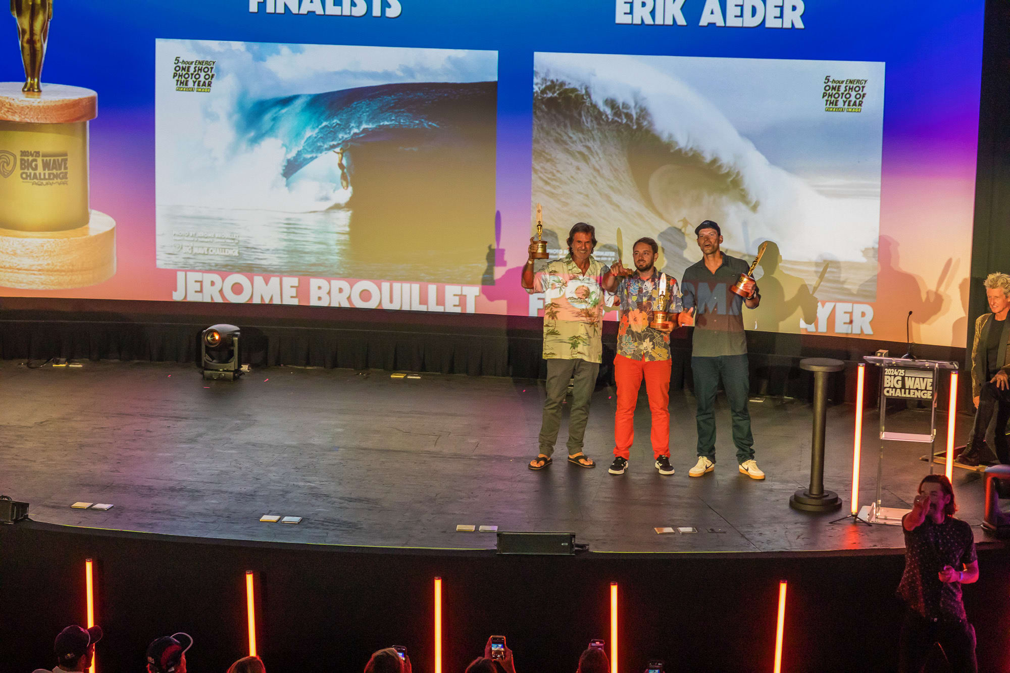 New to the program this year was the Five Hour Energy One Shot Photo of the Year award, which went to Fred Pompermayer for the image he captured of Mel at Maverick’s. Last year Pompermayer was honored with a lifetime achievement award at the Big Wave Challenge, and he kept his foot on the gas this year, landing in Half Moon Bay just in time for the monster December swell.