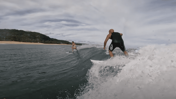 In a new clip – check it out above – the whole family gets together for a surf session at Sunset Beach. And, of course, they get a couple party waves together.