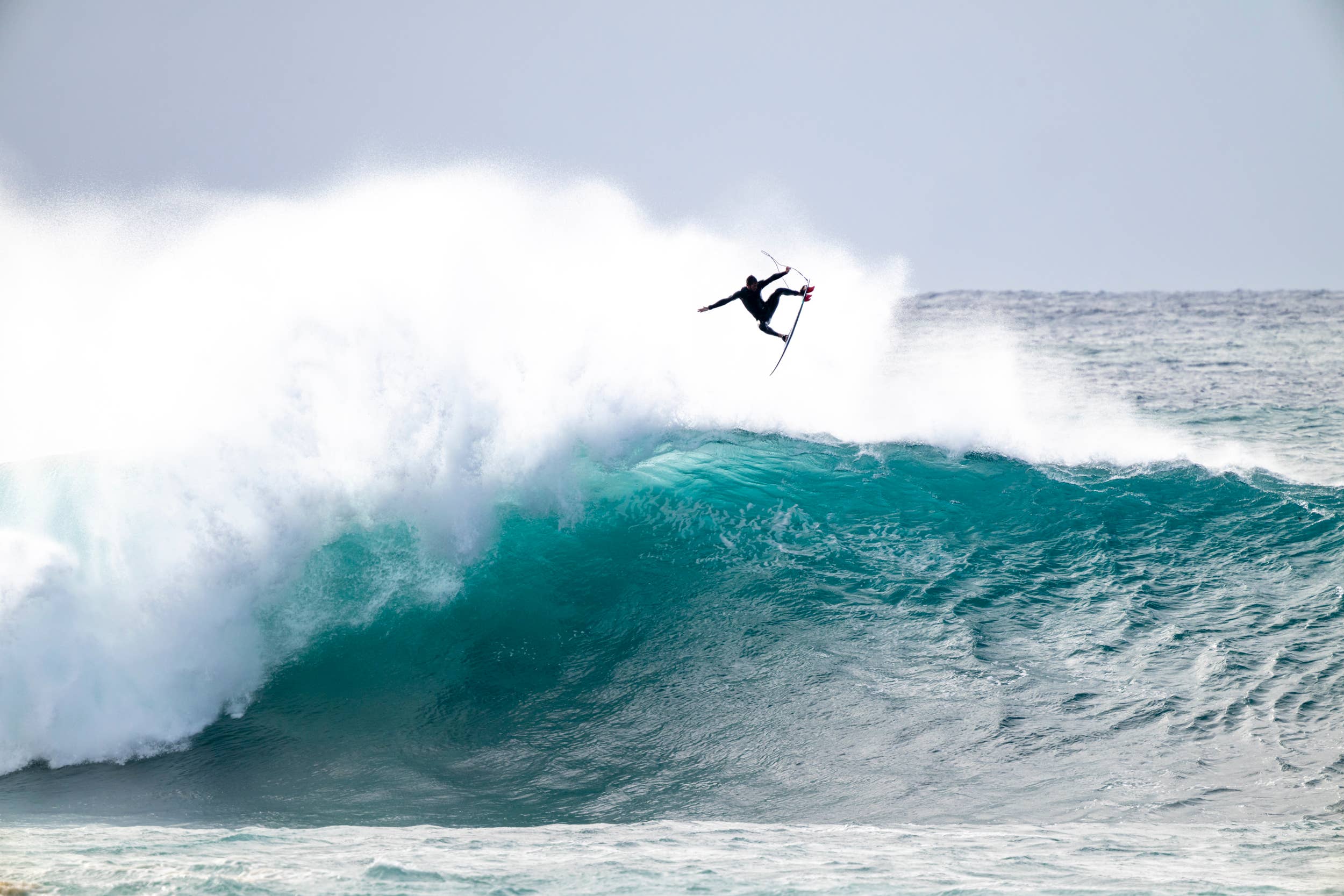 Dylan Longbottom marked his 52nd birthday in fitting fashion by assembling a strike team of two of the world’s most talented and fearless surfers, and celebrated with his passion for extreme surfing. Lucas “Chumbo” Chianca, one of Dylan’s own team riders, and close friend Lucas Fink made the journey to Australia to sample some serious local energy. It was their first time Down Under, and within 48 hours, they were deep inside eight-foot slabs at Ours, followed by 12- to 15-foot point breaks just a short drive from Sydney.